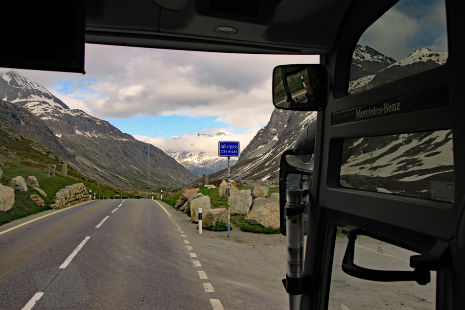 Nach unserem Ausflug zum Landwasserviadukt stand die Überquerung des Julierpasses auf dem Programm. Klaus war achtsam und hielt den Moment in 2.284 Metern über dem Meer fest.