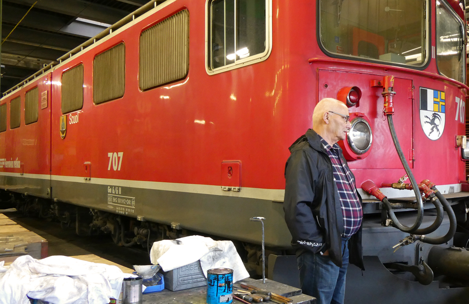 Völlige Fassungslosigkeit Ende Juli 2024. Der bekannte ehemalige RhB Lokführer Armin Brüngger hat seine letzte Reise angetreten. Armin Brüngger, Gründungspräsident vom Club 1889 aus Samedan, weilt nicht mehr unter uns. Am 15. Juni präsentierte er uns voller Stolz und Leidenschaft die vom Club 1889 betreuten Fahrzeuge der Rhätischen Bahn im Depot von Samedan. Der Eisenbahner mit riesigem Fachwissen war mehrfach Projektleiter bei der Aufarbeitung der RhB Veteranen.In Samedan betreute er die aktiven Clubmitglieder , die sich wöchentlich zum Arbeitseinsatz im Rhb Depot treffen. Bei unzähligen Sonderfahrten war er auf dem Führerstand der Dampflokomotiven anzutreffen und führte die Loks mit ihren Sonderzügen durch die Schönheit Graubündens. Wir trauern um einen liebenswerten Menschen, der mit großer Erfahrung und Können seinem Berufsstand große Anerkennung eingebracht hat. Unser Hans Stumpf verliert einen langjährigen geschätzten Freund und Ideengeber für die Erhaltung der historischen Fahrzeuge. Unzählige Arbeitseinsätze in Samedan und die Leidenschaft für die Eisenbahn brachten beide eng zusammen. Danke für viele Begegnungen, legendäre Sonderfahrten und Dein persönliches Engagement für unsere Teilnehmer der Grimmtour 2024! Wir werden Dich nie vergessen! In stillem Gedanken Joachim Gutjahr