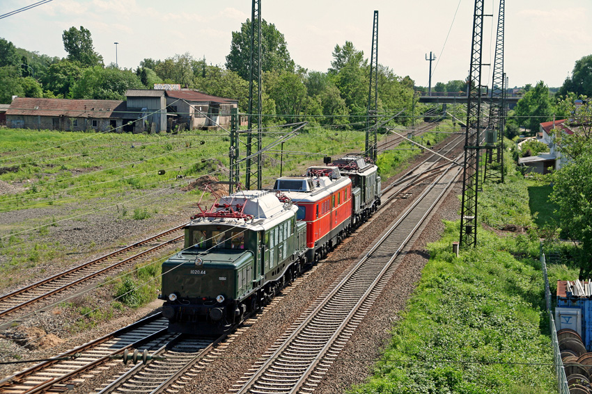Eine illustre Fuhre war am 22. Mai 2009 auf der Main Neckar Bahn Richtung Koblenz unterwegs. Für eine Ausstellung im DB Museum Koblenz Lützel waren die Gastloks 1020.44, 110.505, und E 94 279 in Weinheim unterwegs. Die Museumsloks der ÖBB warenwohl das erste mal an der badischen Bergstraße unterwegs. Das DB Museumskrokodil war in seiner betriebsfähigen Zeit jedoch öfter rund um Weinheim mit Sonderzügen anzutreffen.