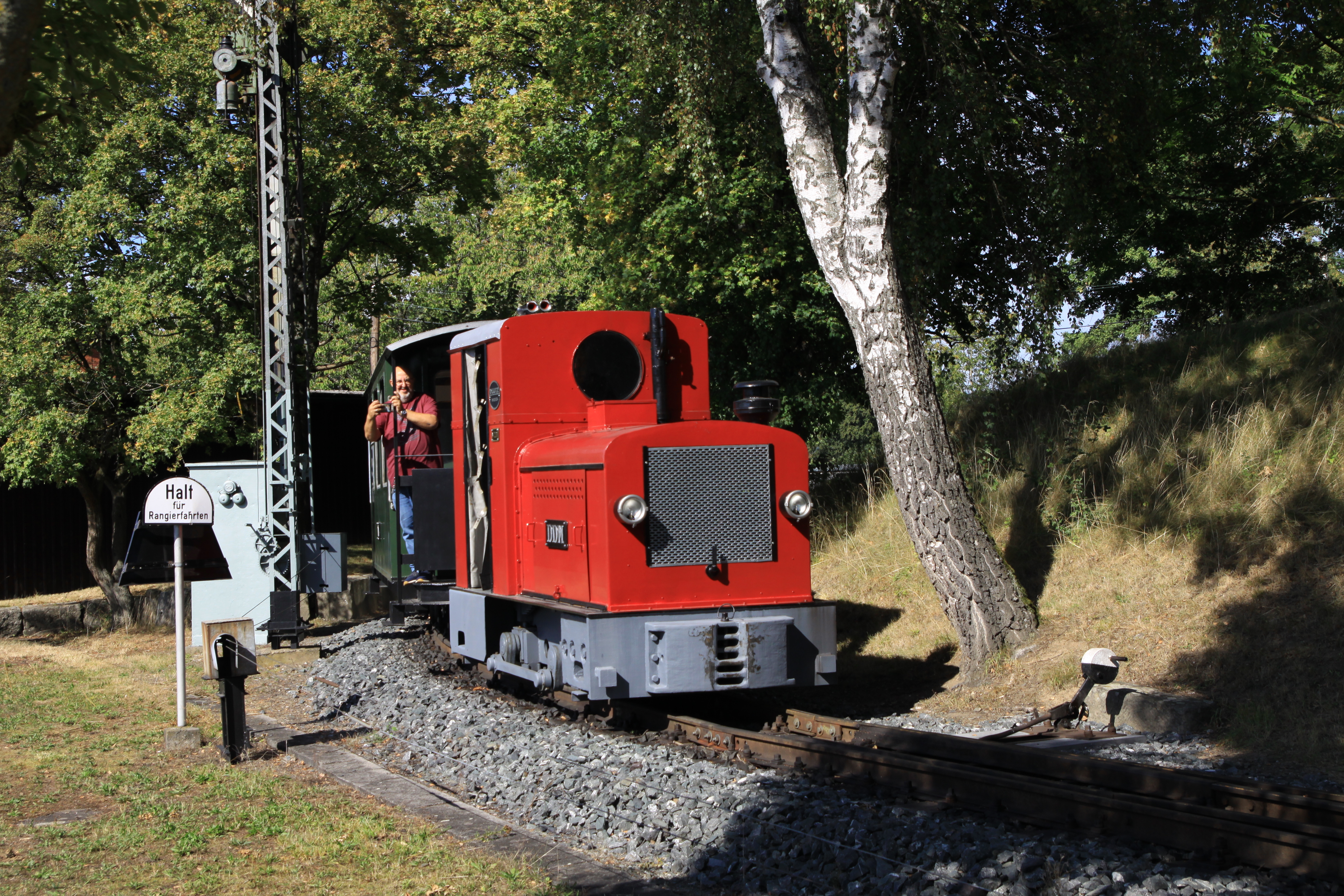 Unser Armin ist an vorderster Stelle und genießt das Brummen der Deutz-Feldbahnlok des DDM. Zeuge war K. Schmitt